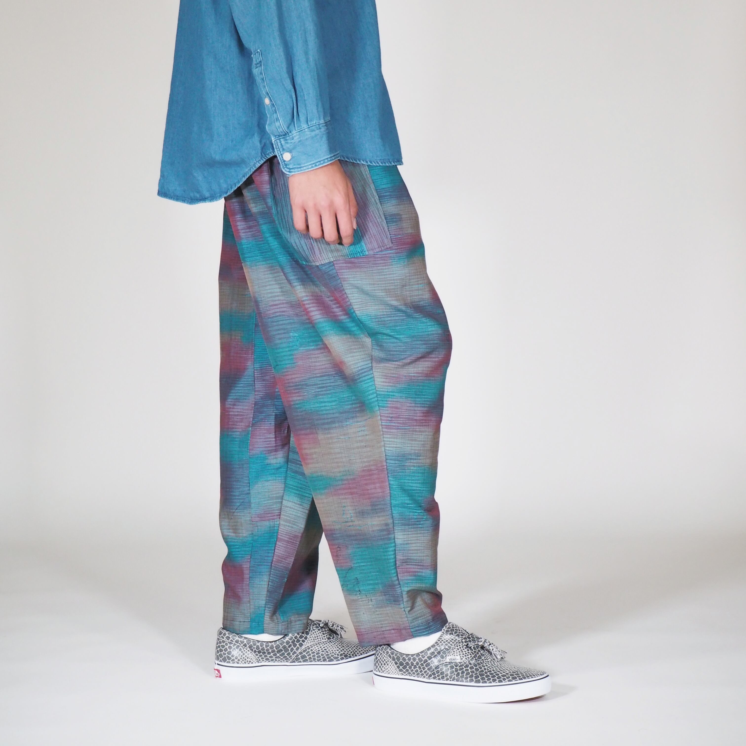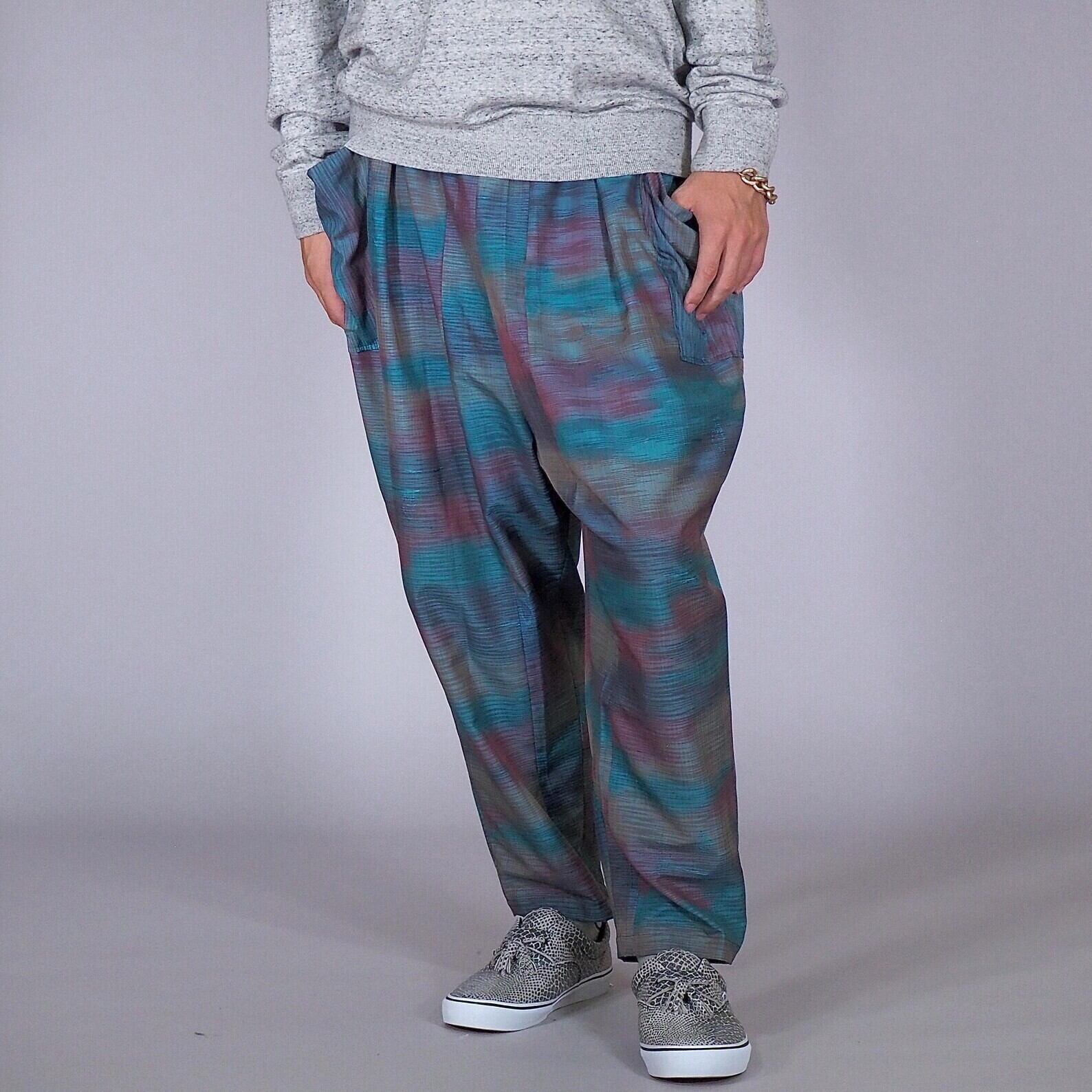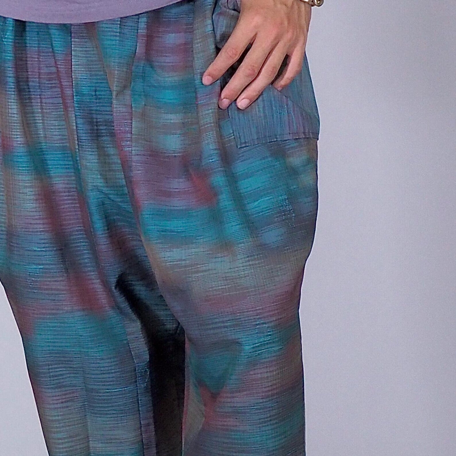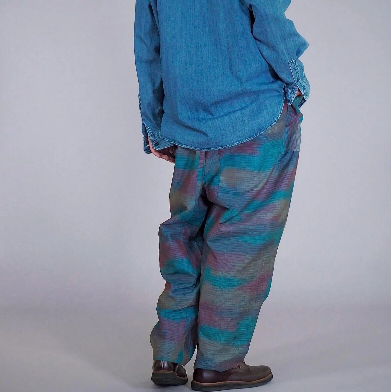 この「UMUI ノラパンツ」は、1980年代のヴィンテージ着物から贅沢にリメイクされた、唯一無二のアイテムです。日本の伝統的な作業着「野良着(ノラギ)」からインスパイアされた、モダンでリラックス感のあるユニセックスシルエットが特徴です。