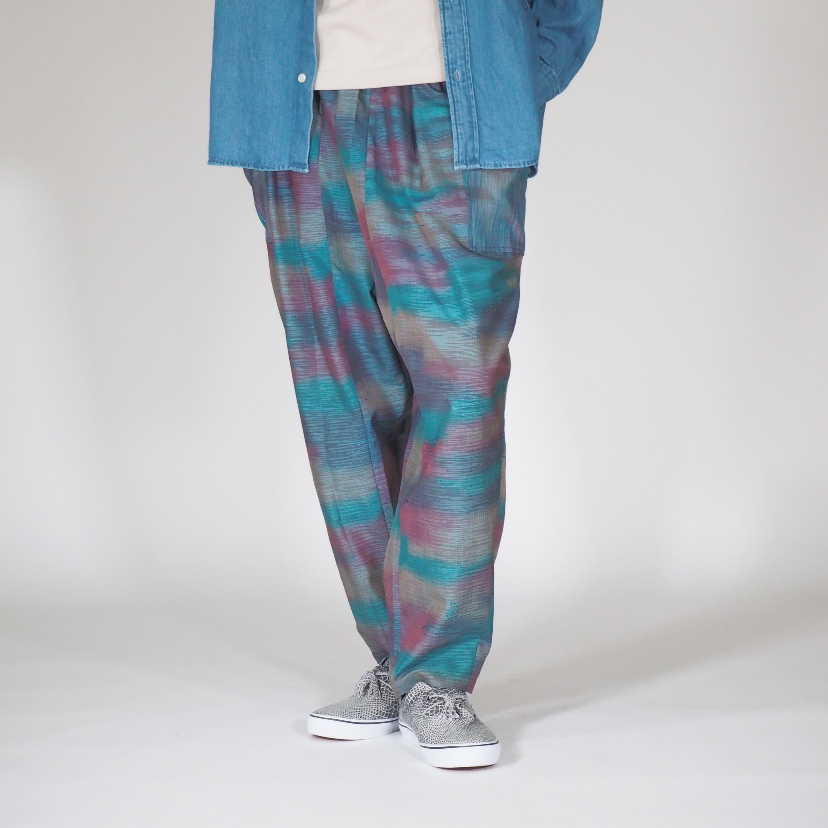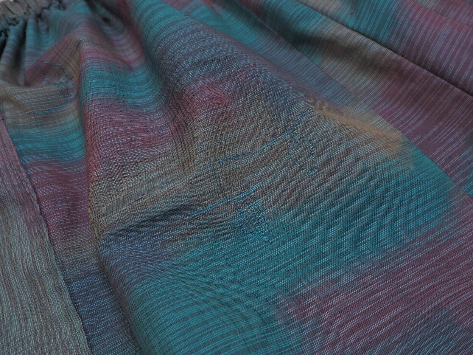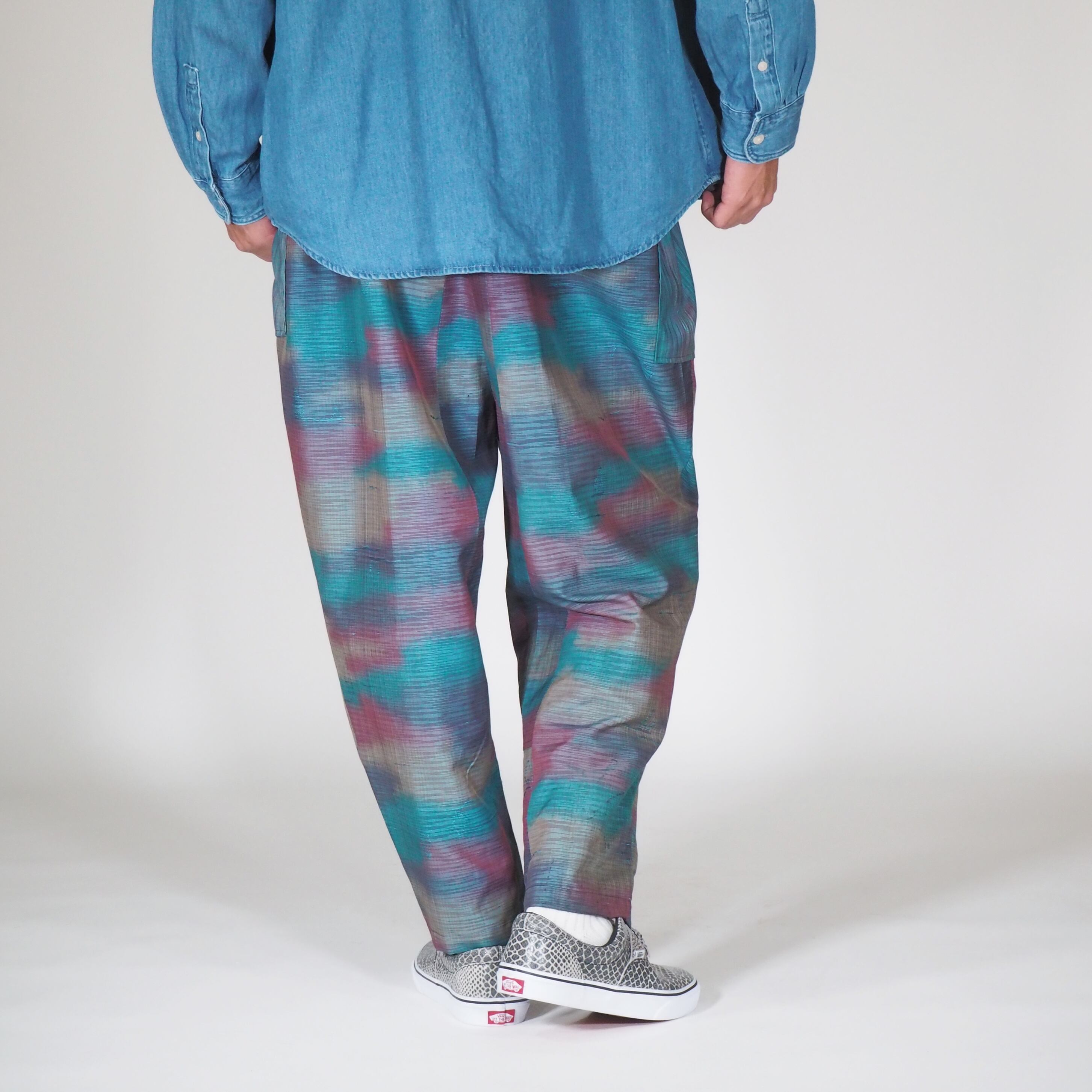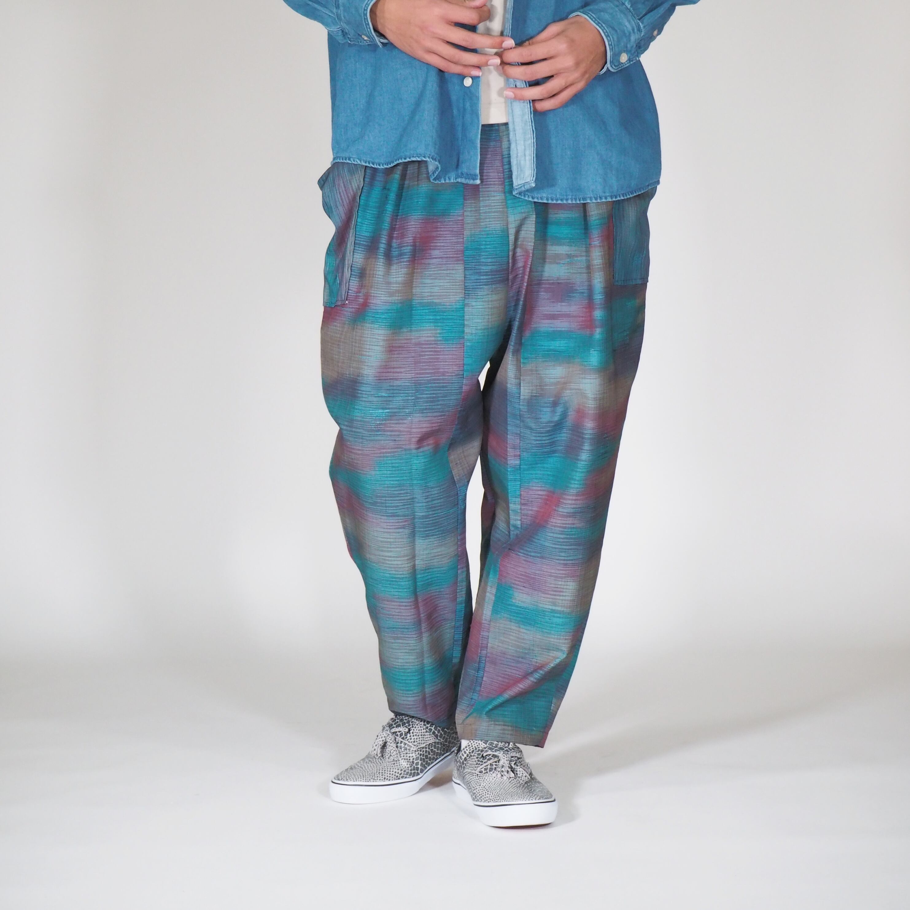 この「UMUI ノラパンツ」は、1980年代のヴィンテージ着物から贅沢にリメイクされた、唯一無二のアイテムです。日本の伝統的な作業着「野良着(ノラギ)」からインスパイアされた、モダンでリラックス感のあるユニセックスシルエットが特徴です。