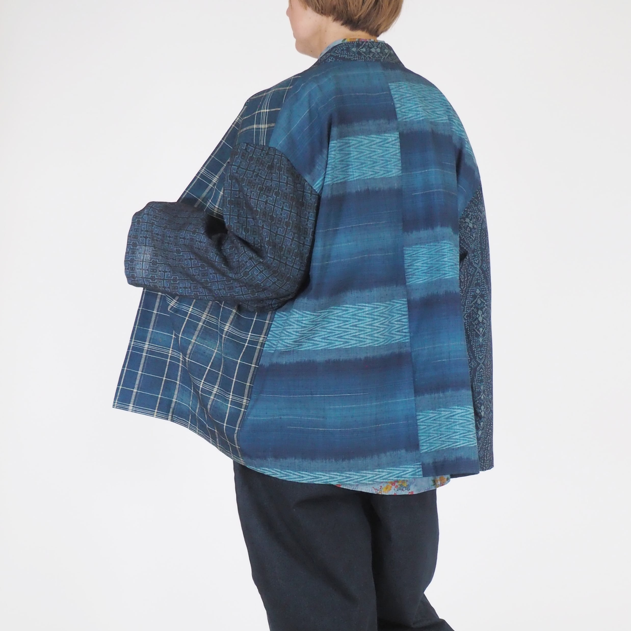 1980〜90年代のヴィンテージ着物4枚を使用し、伝統とストリートの感性を掛け合わせた特別なパッチワークジャケットです。