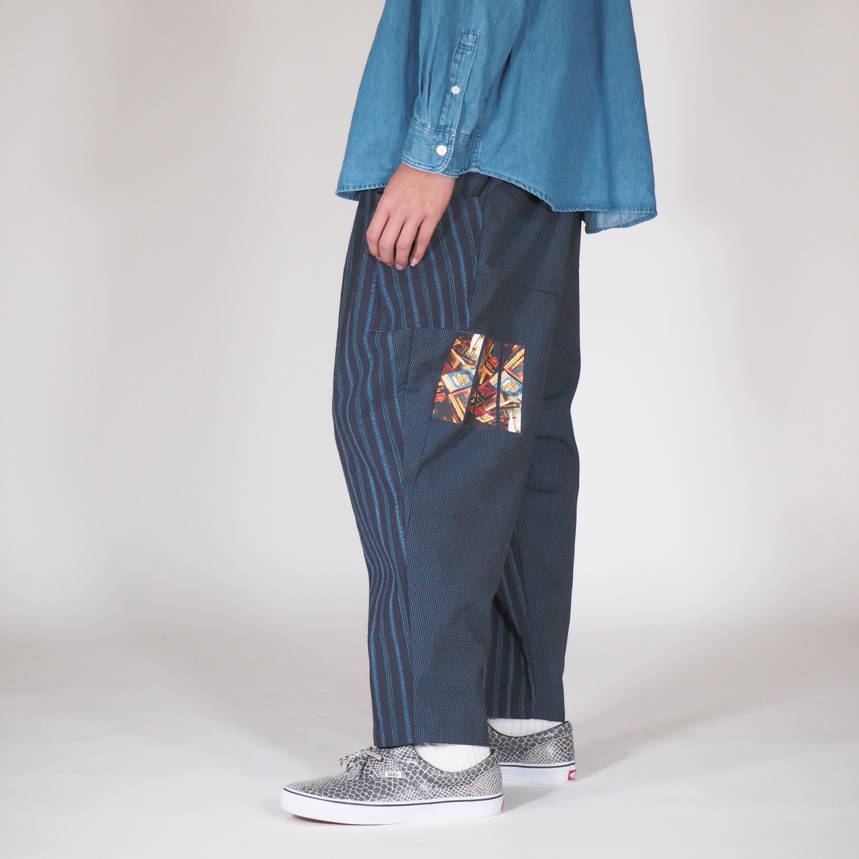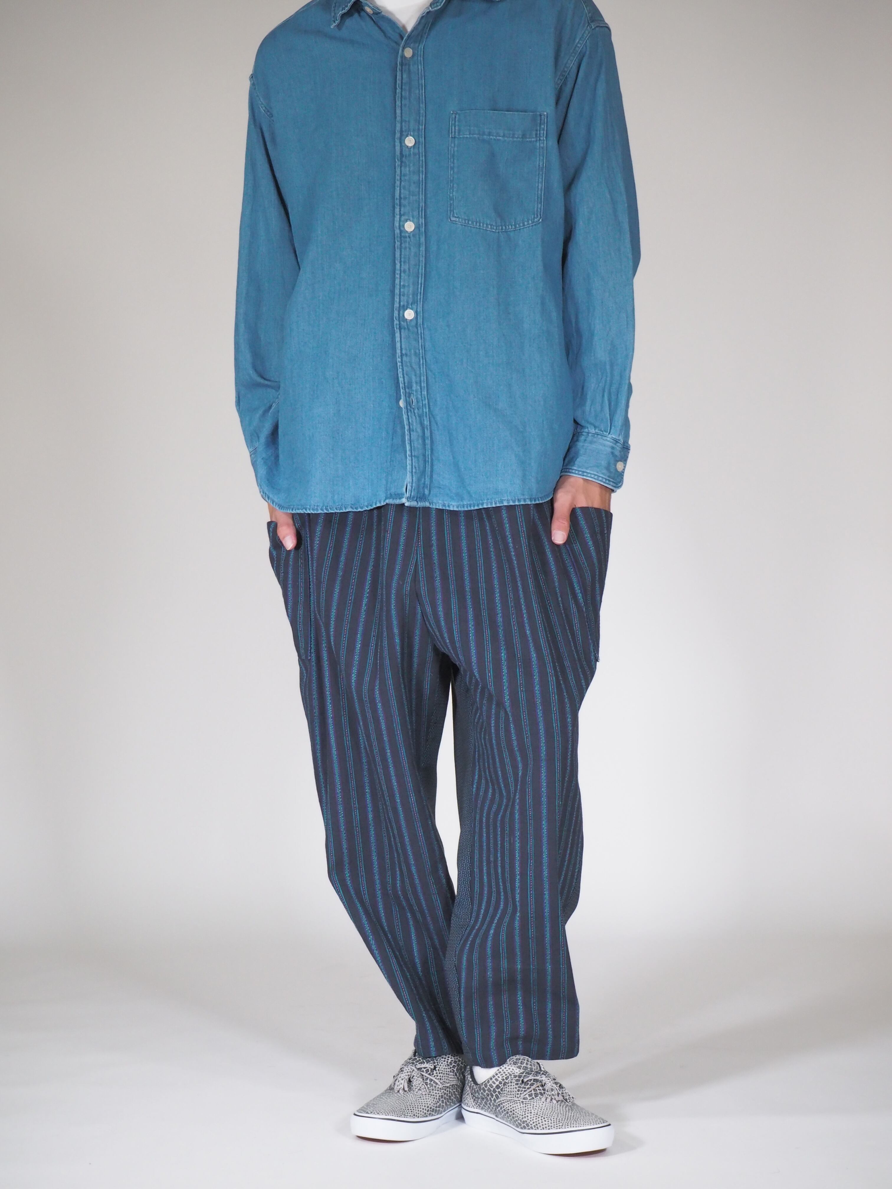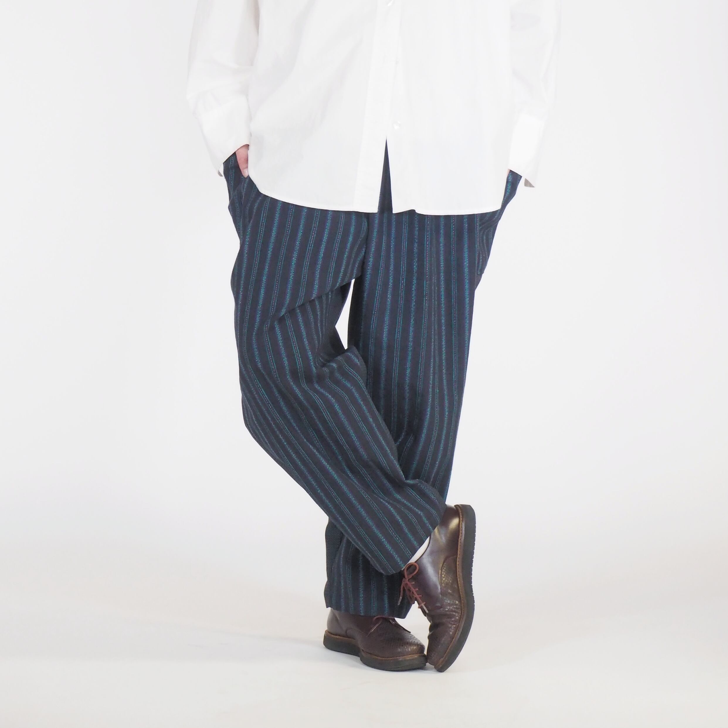 日本のヴィンテージテキスタイルと現代的な感性が融合した履きやすくアティチュードのあるパンツです。