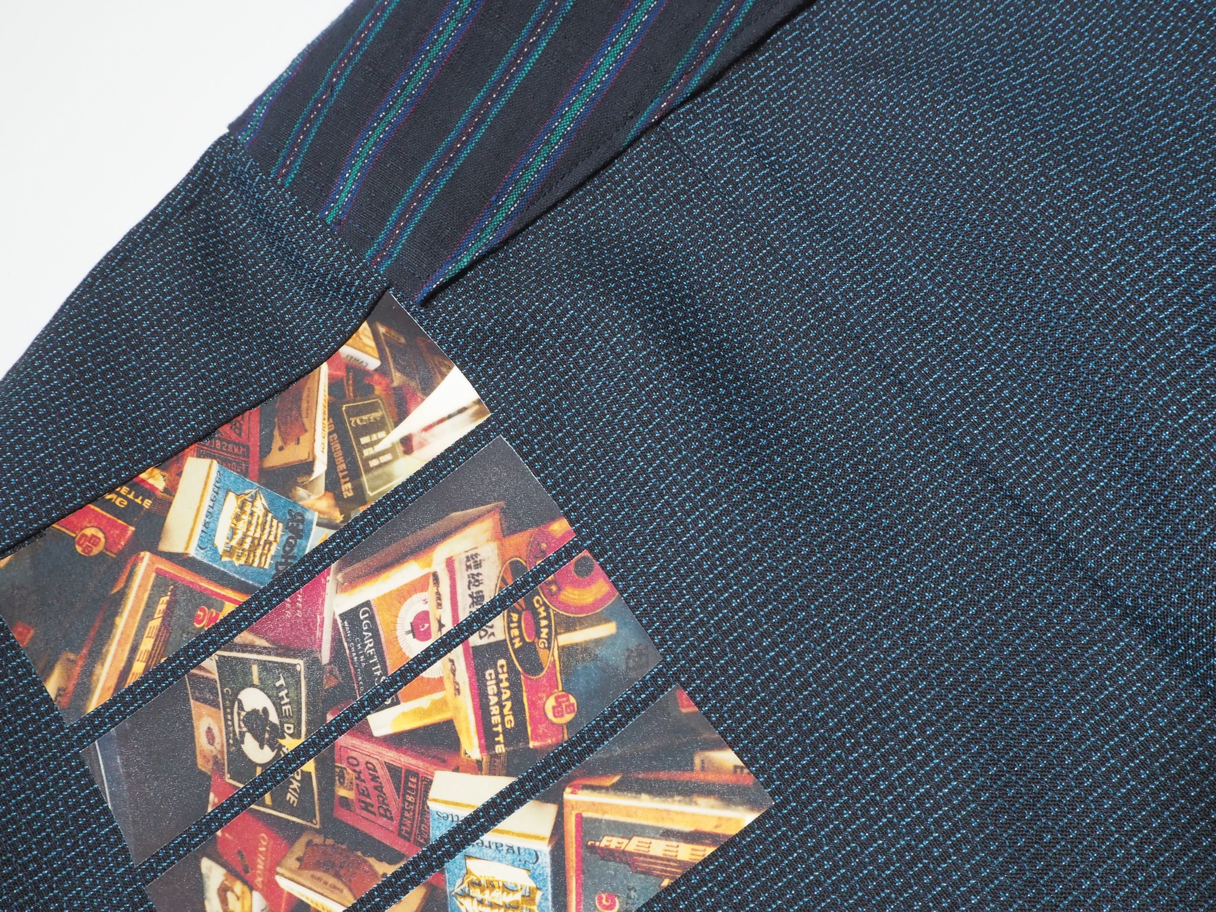 素材のストーリー: 正真正銘のヴィンテージ着物から再利用された個性的な柄は、環境に配慮したサステナブルなファッションへのこだわりも表現しています。