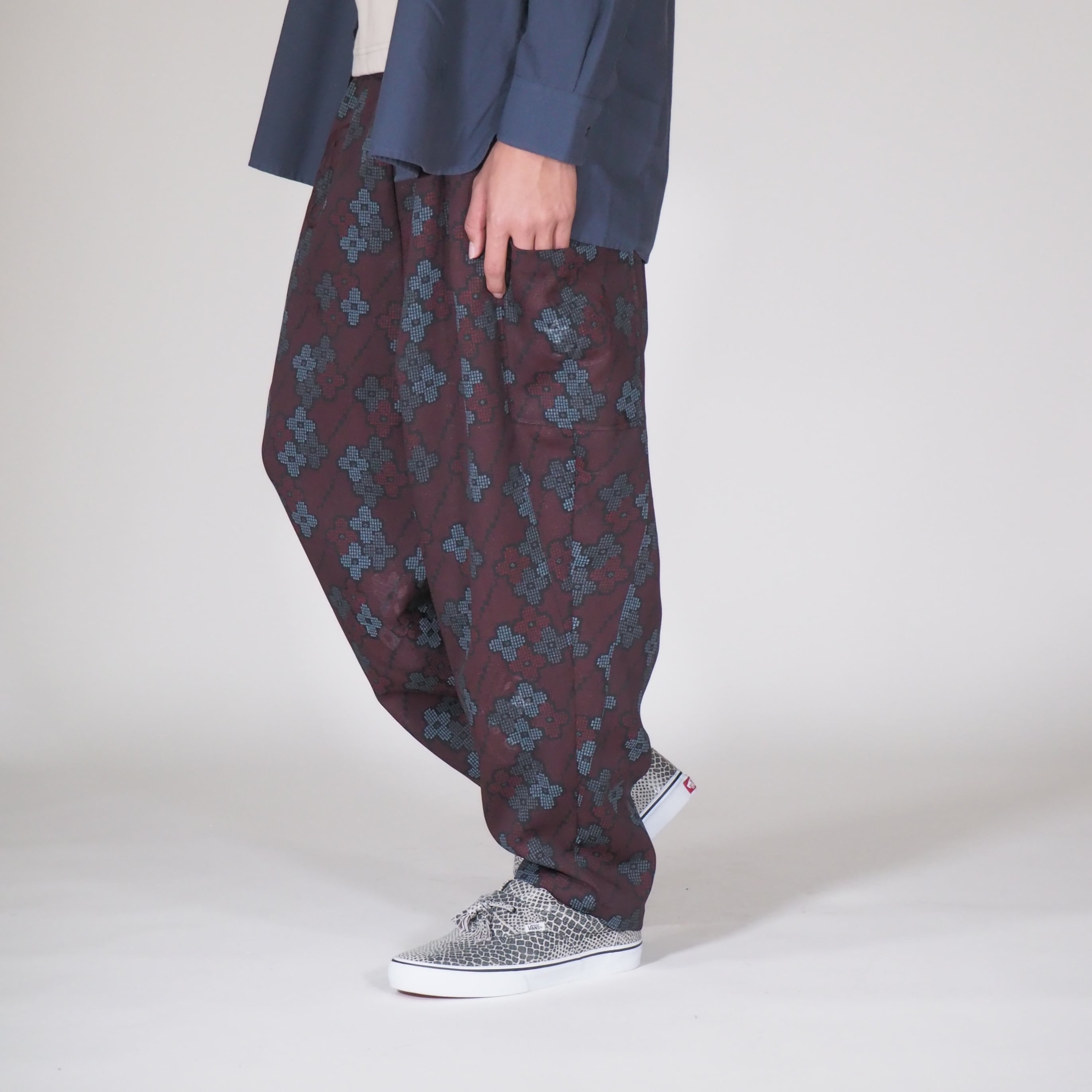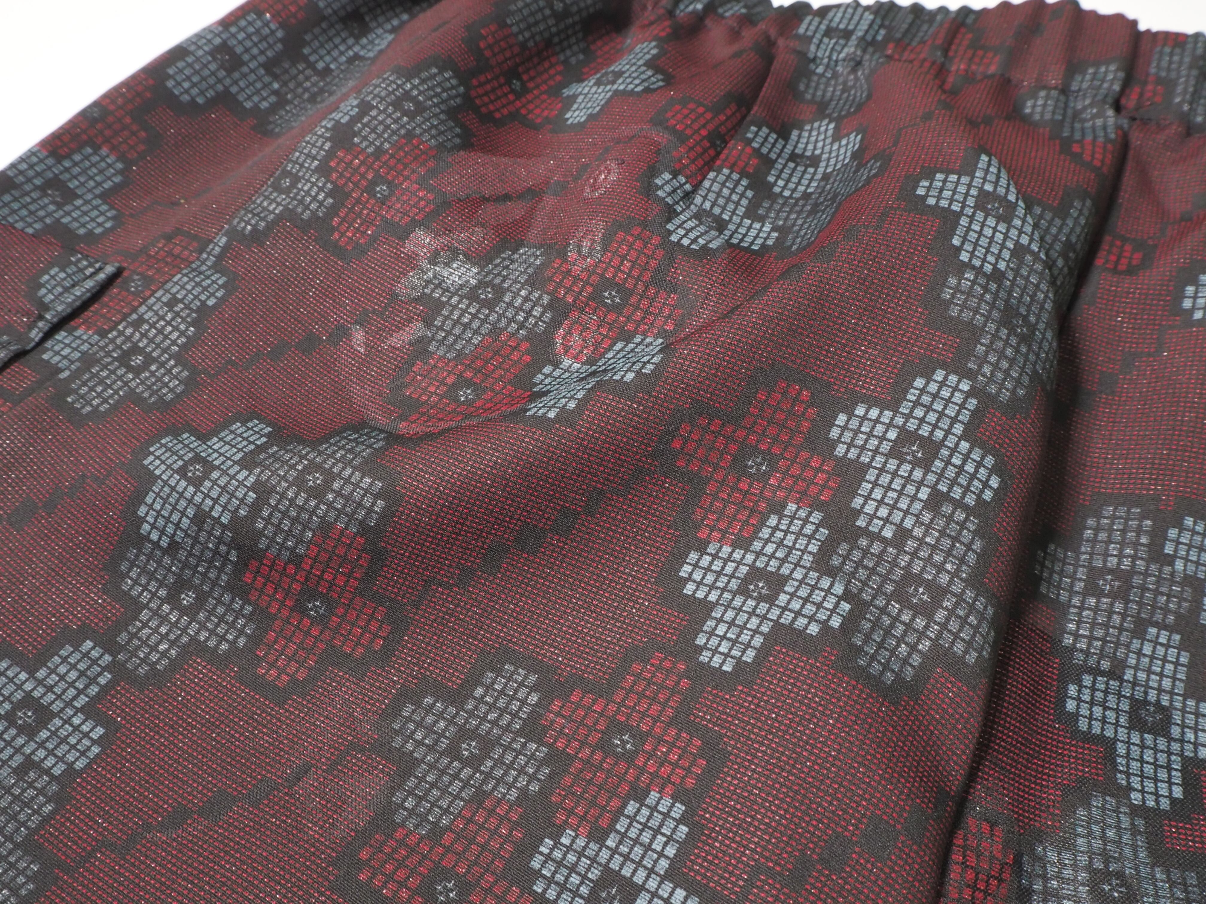 この「UMUI ノラパンツ」は、1980年代のヴィンテージ着物から贅沢にリメイクされた、唯一無二のアイテムです。日本の伝統的な作業着**「野良着(ノラギ)」**からインスパイアされた、モダンでリラックス感のあるユニセックスシルエットが特徴です。