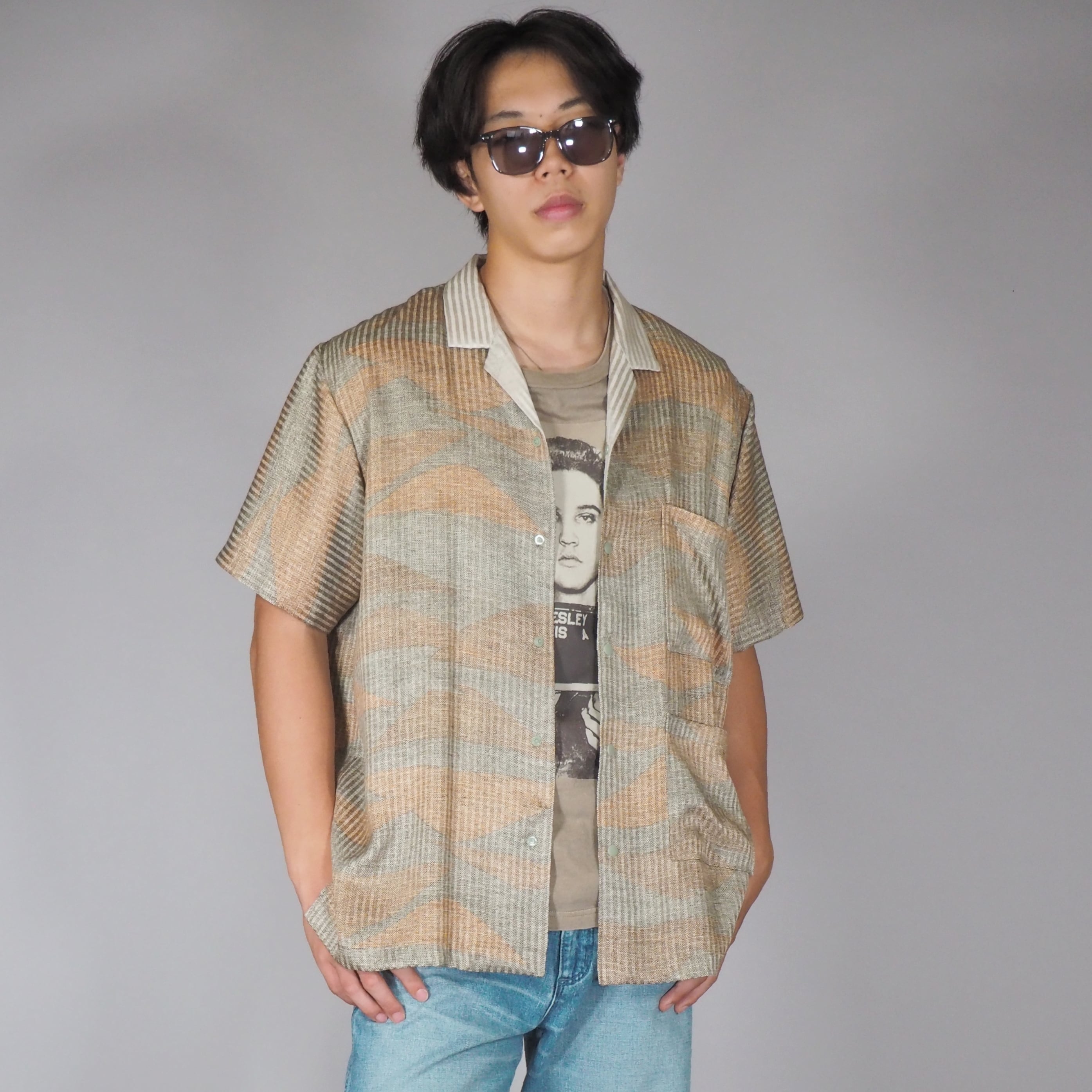 ヴィンテージ着物シルクを用いて仕立てた、ユニセックスのスナップボタンシャツ。